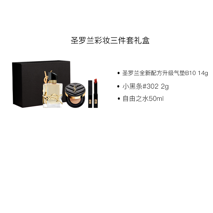 Набор: коробка + Yves Saint Laurent Brand-New Formula Upgraded Air Cushion B10 14 г + №302 Black & 2 г + парфюмерная вода Eau De Parfum EDP 50 мл