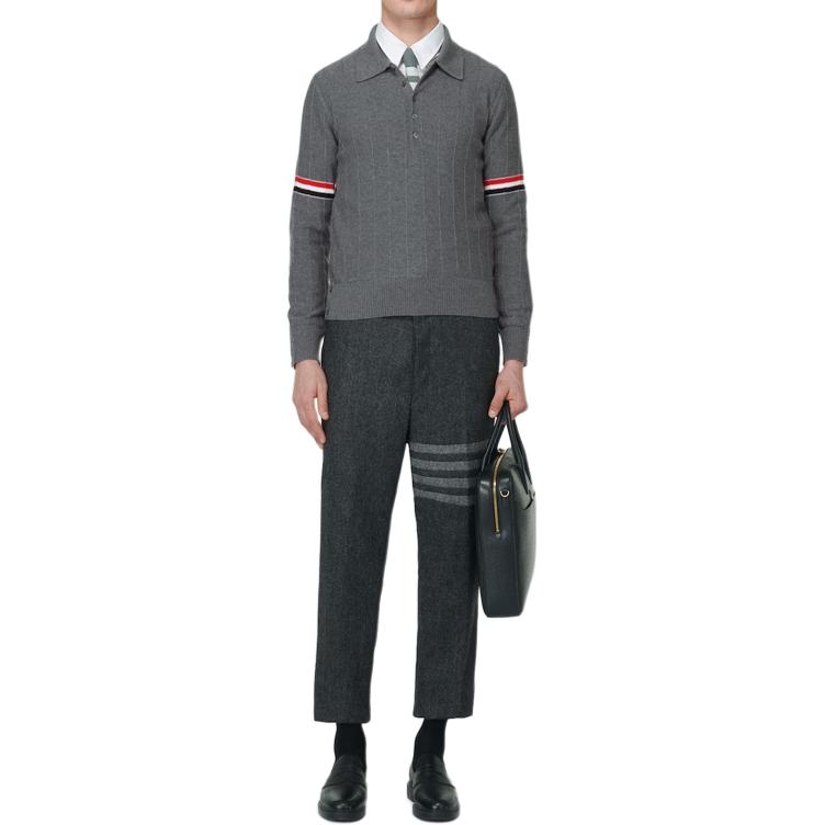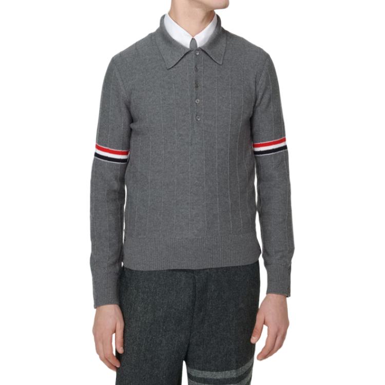 Поло с длинным рукавом в полоску RWB THOM BROWNE, серый