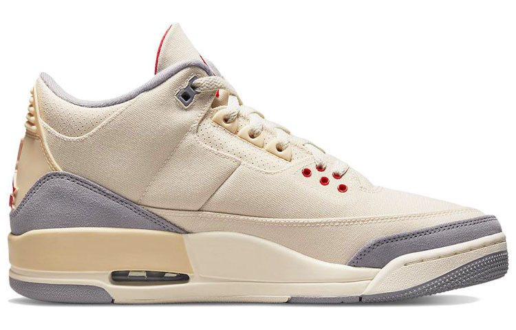 Air Jordan III, революционные кроссовки, созданные Тинкером Хэтфилдом и Майклом Джорданом, придали классическим кроссовкам Jordan новый облик. Эти кроссовки AJ3 «Muslin» сочетают парусину и замшу для повседневного комфорта; кремовая межподошва и накладка на пятке добавляют нотку ретростиля; а яркие красные акценты на люверсах в передней части стопы, язычке и логотипе на пятке делают их еще привлекательнее.