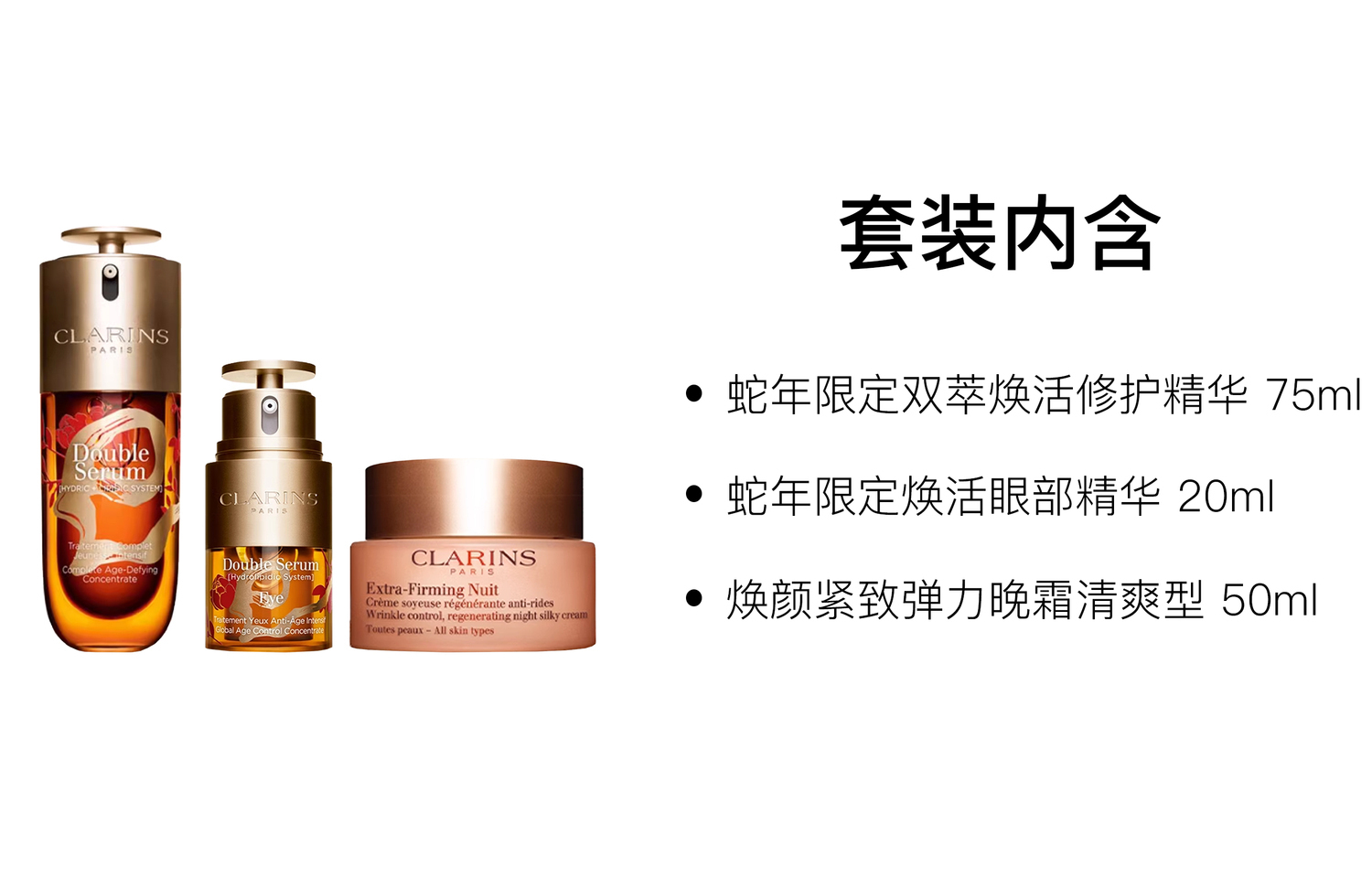 Вес нетто: восстанавливающая сыворотка с двумя экстрактами 75 мл + восстанавливающая сыворотка для кожи вокруг глаз 20 мл + восстанавливающий подтягивающий ночной крем с легкой текстурой 50 мл