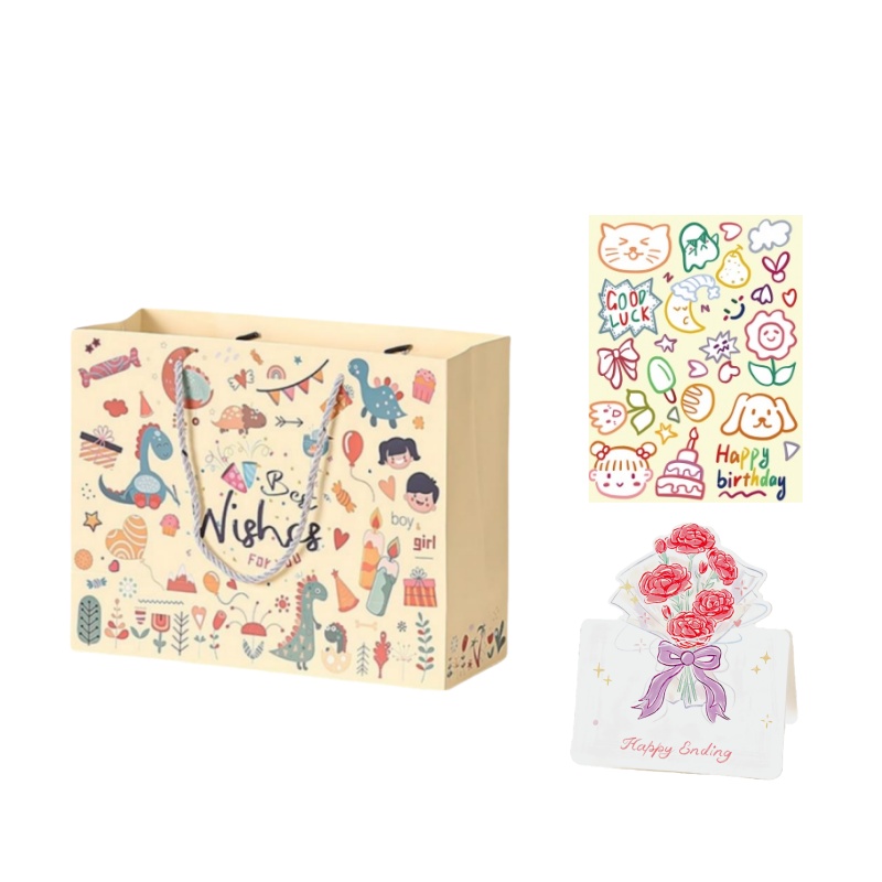 Коробка: пакет для покупок + поздравительная открытка + наклейка