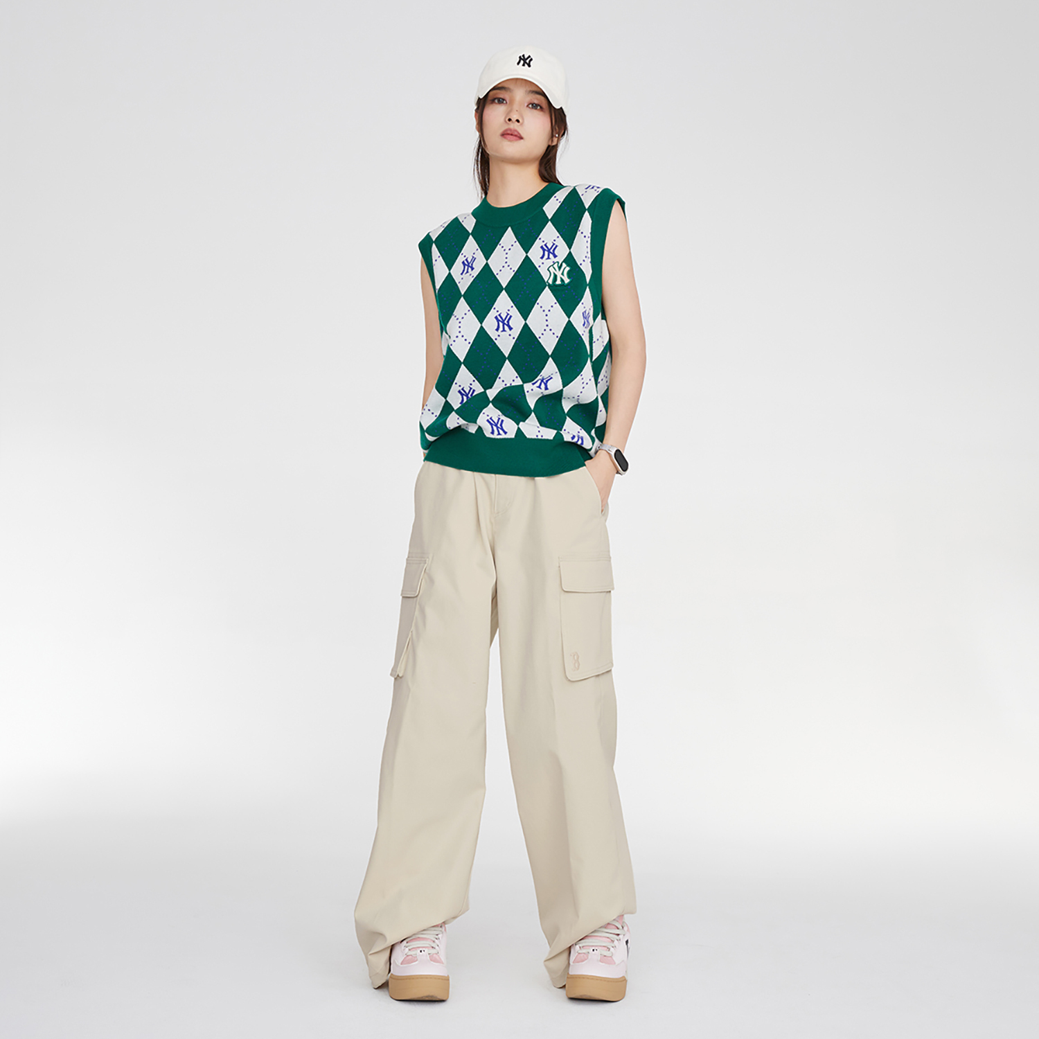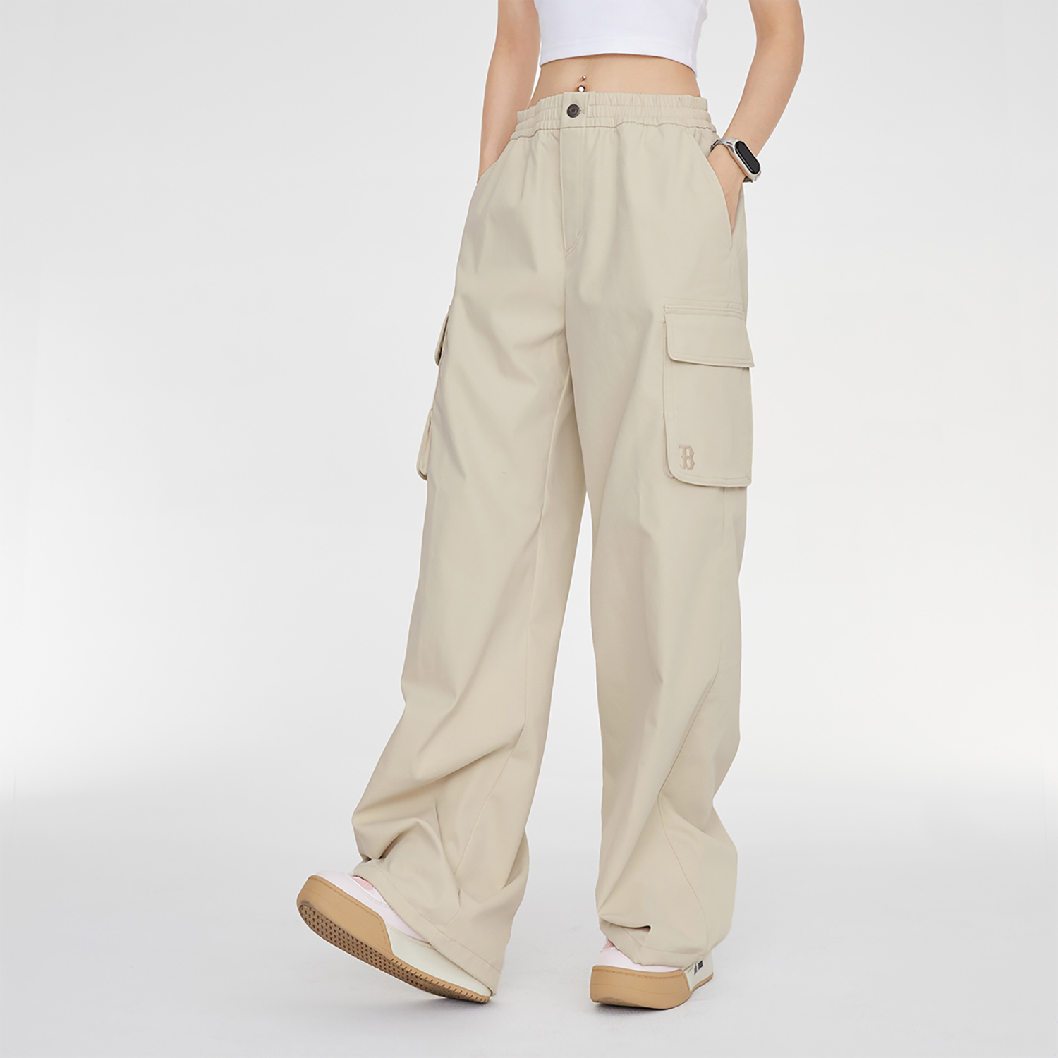 Свободные карго-штаны женские MLB, Ecru