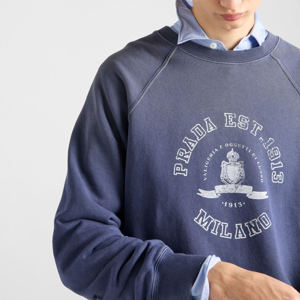 Хлопковый флисовый свитшот PRADA, синий