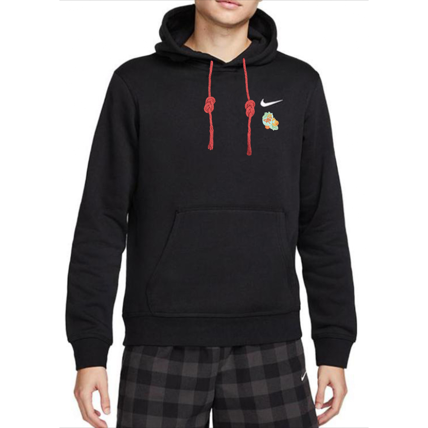 Эта модель, разработанная на заказ, основана на оригинальной толстовке Nike с капюшоном и длинными рукавами на флисовой подкладке, черного цвета, модель унисекс. Вдохновением послужил китайский Новый год. Вышитые вручную благоприятные символы изысканно детализированы, а традиционный китайский узел добавляет стильный штрих!