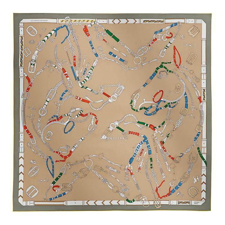 HERMES Шелковый шарф Mulberry бежевый