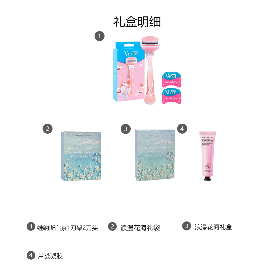 Набор: белый чай Venus, 1 подставка для ножей, 2 насадки для ножей + романтическая цветочная коробка