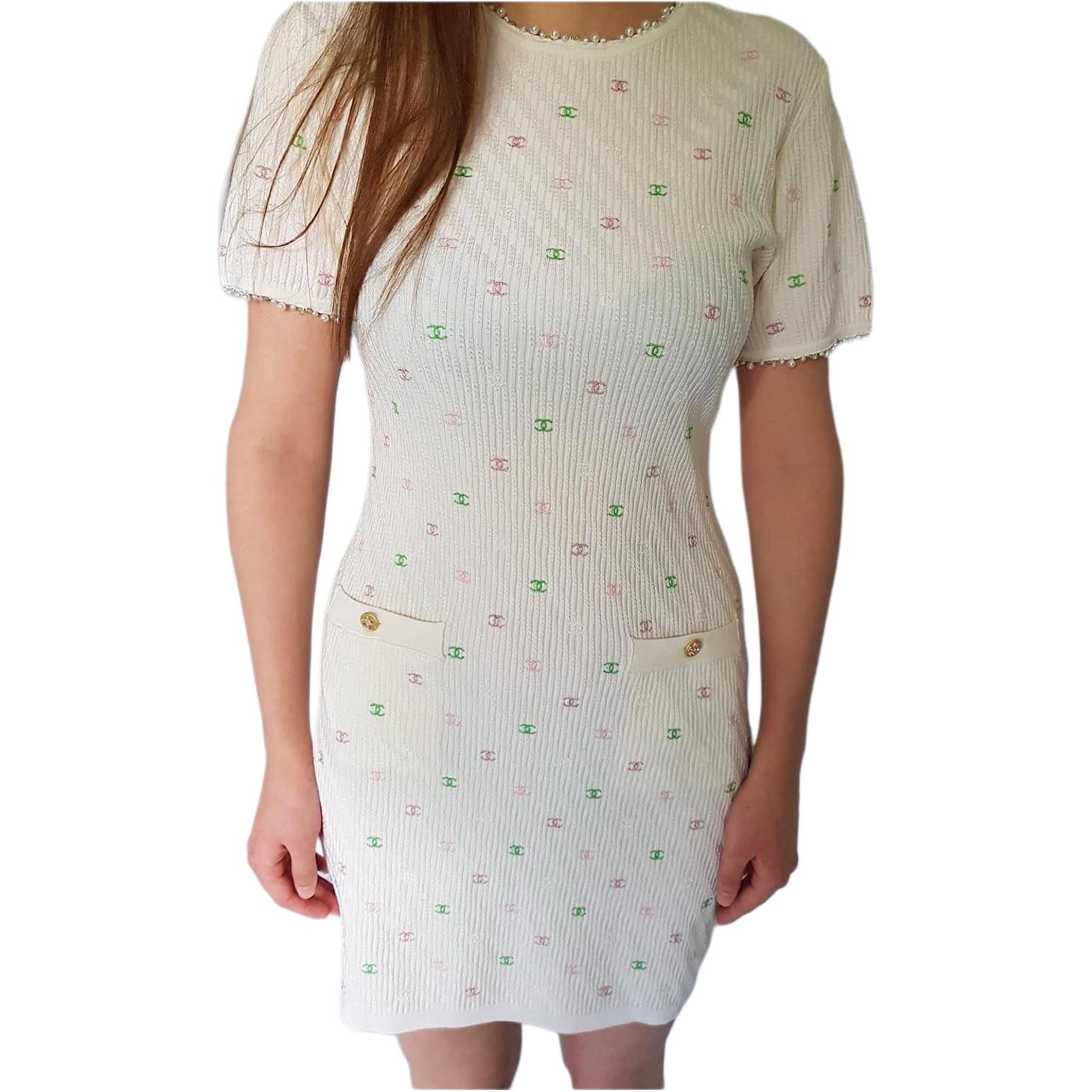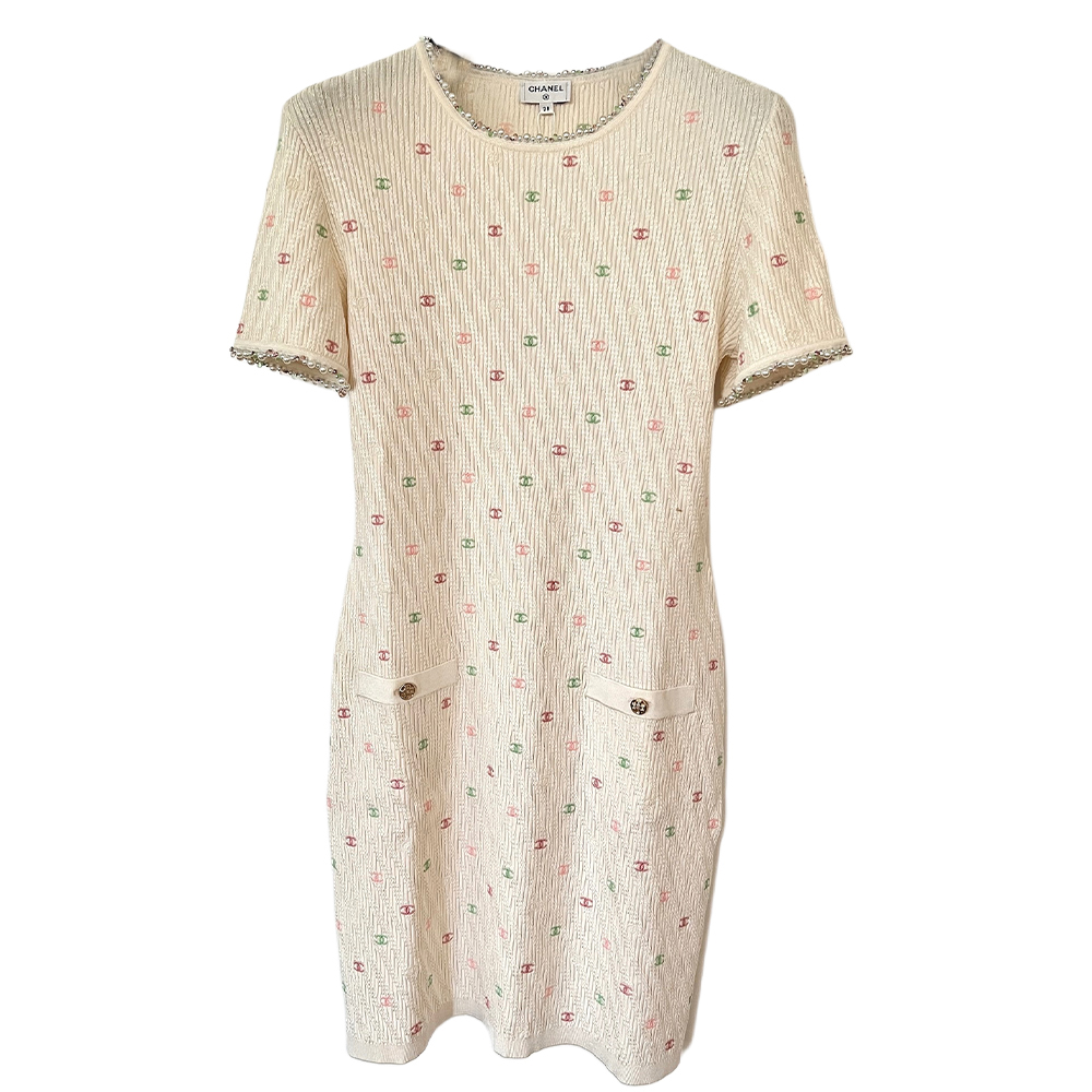 Женское платье с коротким рукавом beige CHANEL, бежевый