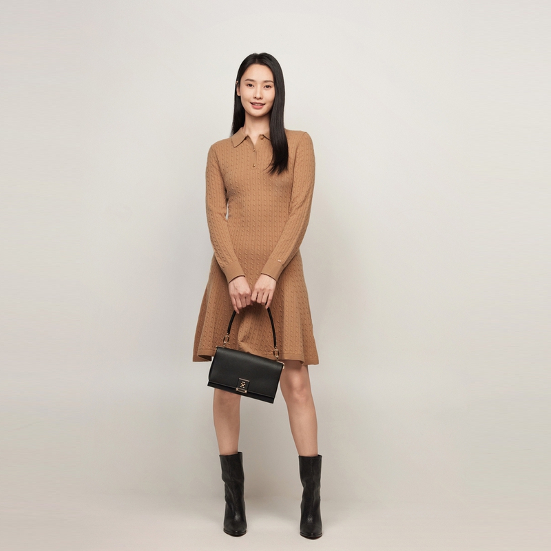 Tommy Hilfiger Женское платье с длинными рукавами khaki