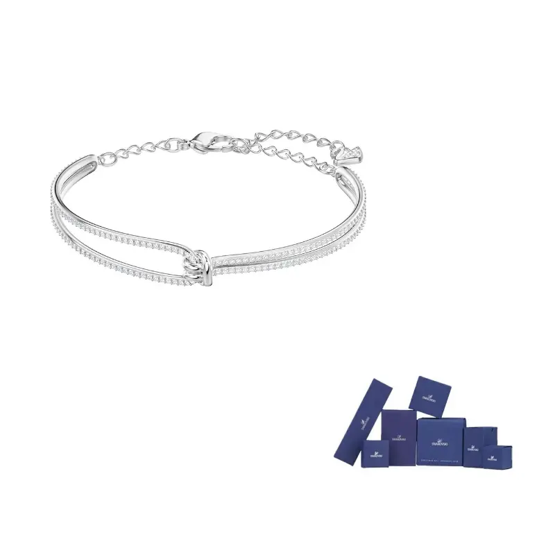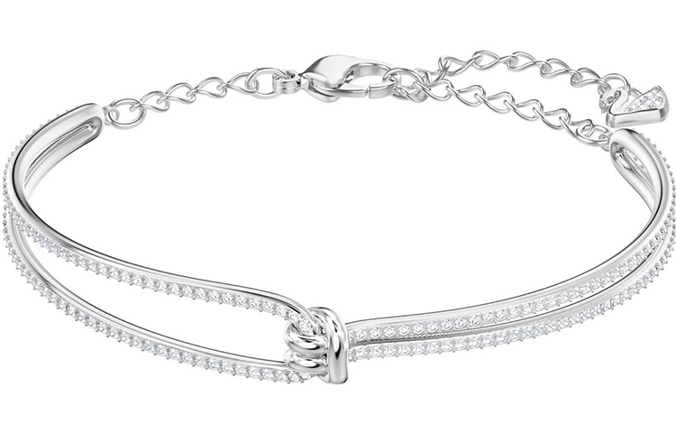 Этот эффектный и изысканный браслет с узловатым узором, символизирующим уникальную связь между двумя людьми, станет романтичным и гламурным подарком на День святого Валентина. Дизайн, сочетающий в себе кристаллы Swarovski в оправе паве и покрытие из белого золота, подчеркивает пленительный блеск бренда и поможет вам создать романтичный и свежий образ.