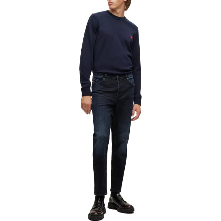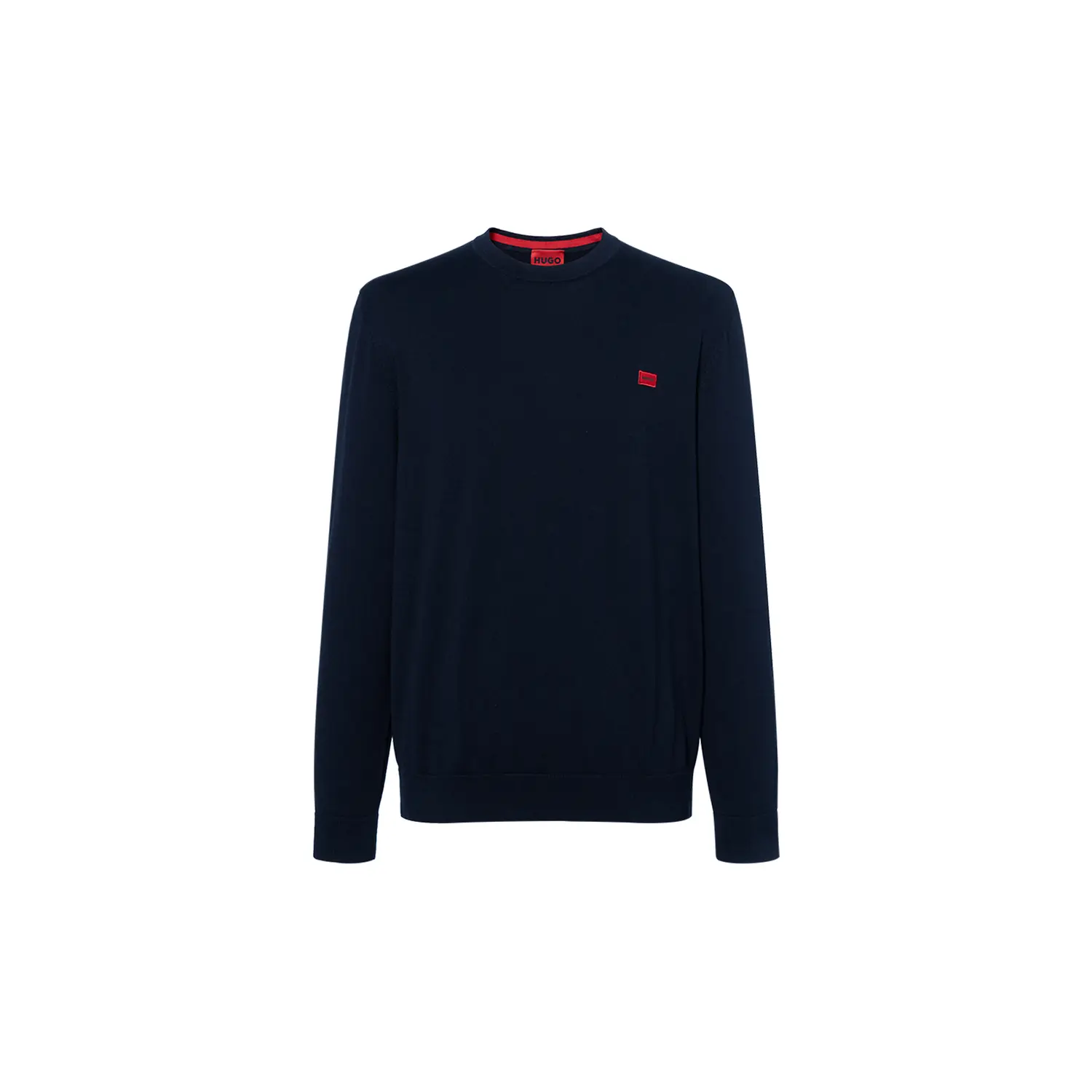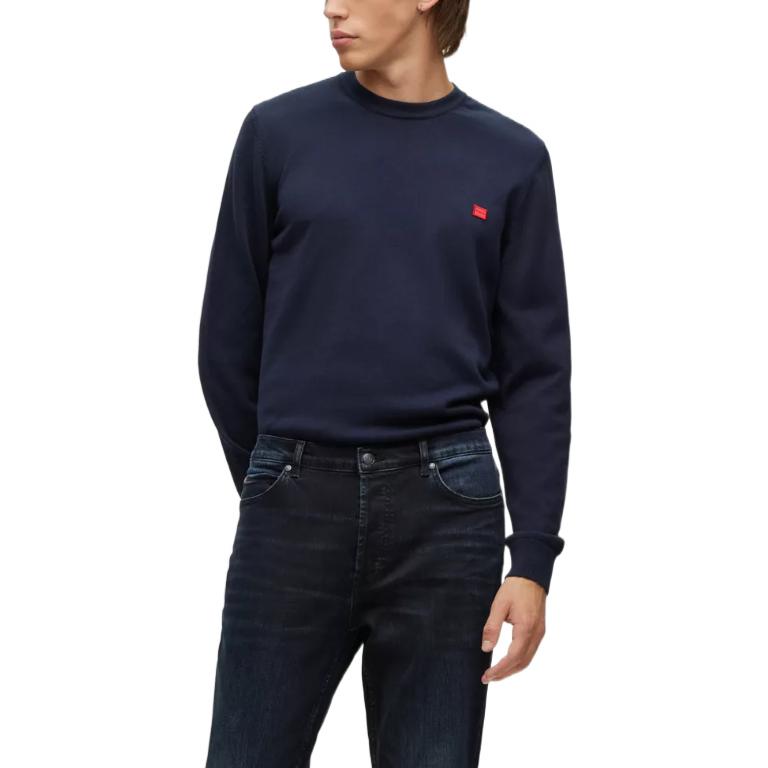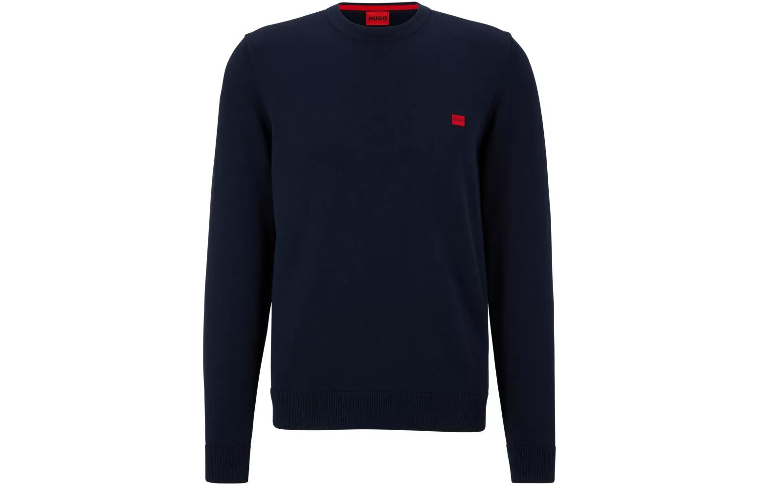 Вязаный свитер с круглым вырезом HUGO BOSS, темно-синий