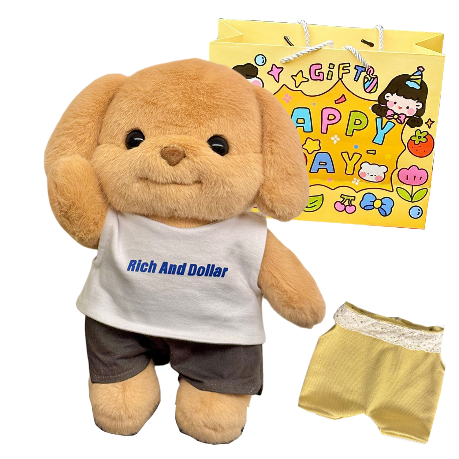 Название продукта: Пудель 35 см (с подвижными руками и ногами) + комплект из белой майки + брюк + одежды + эксклюзивного подарка