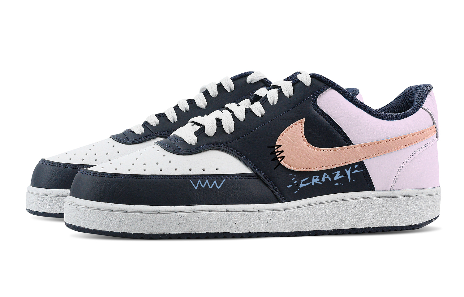 Эти кастомные кроссовки созданы на основе оригинальной модели NIKE Court Vision Low. Дизайнер включил в верх множество модных элементов, создав модную атмосферу благодаря продуманному дизайну.