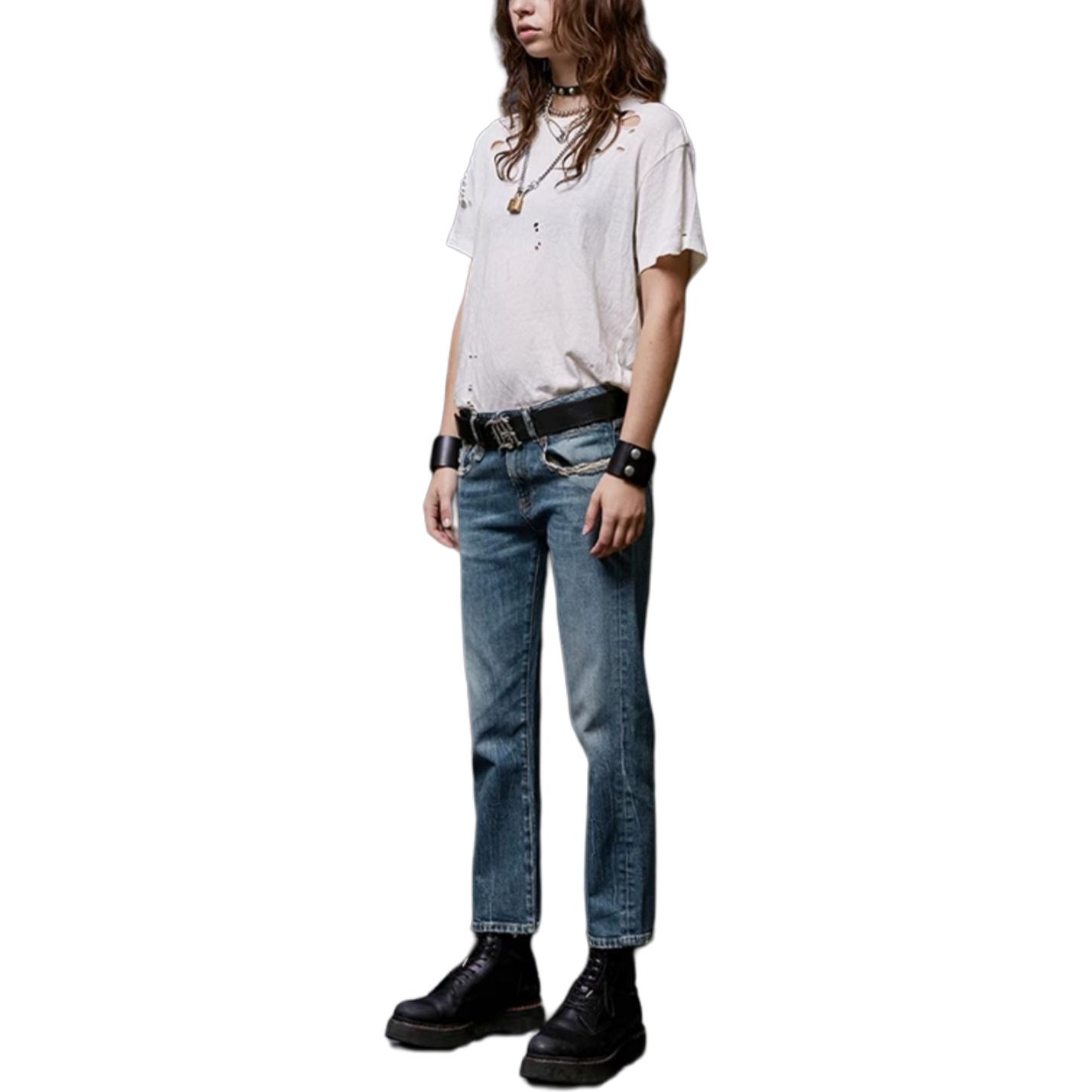 Выцветшие укороченные джинсы R13, синий 90 834₽