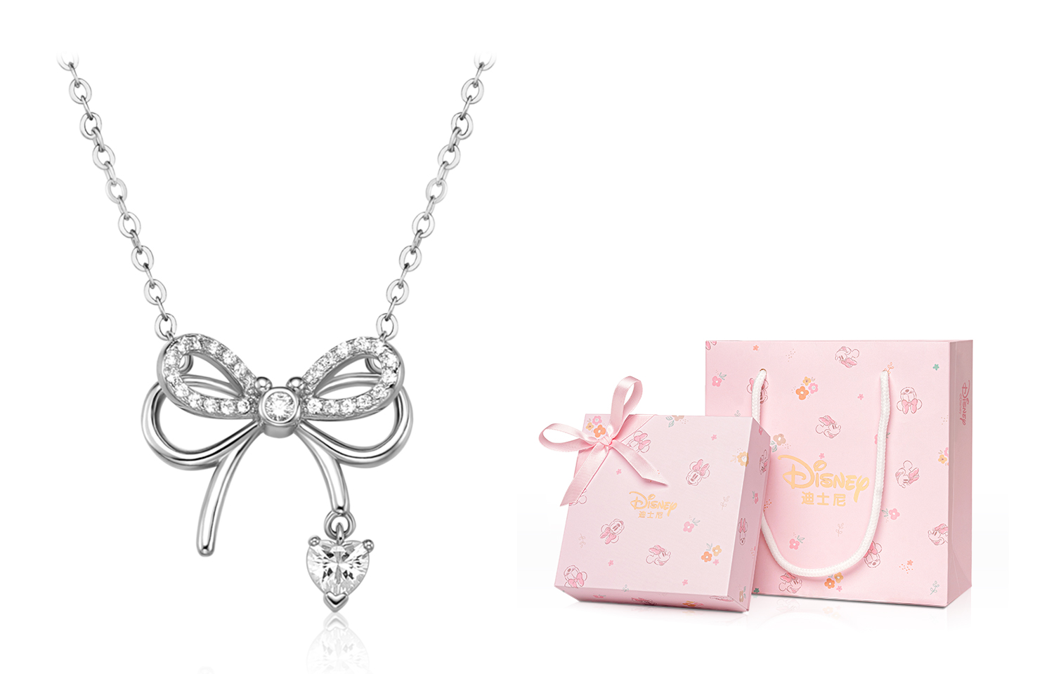 Цвет: Ожерелье с бантом Минни Маус - Белый [Подарочная коробка с розовым сердцем]