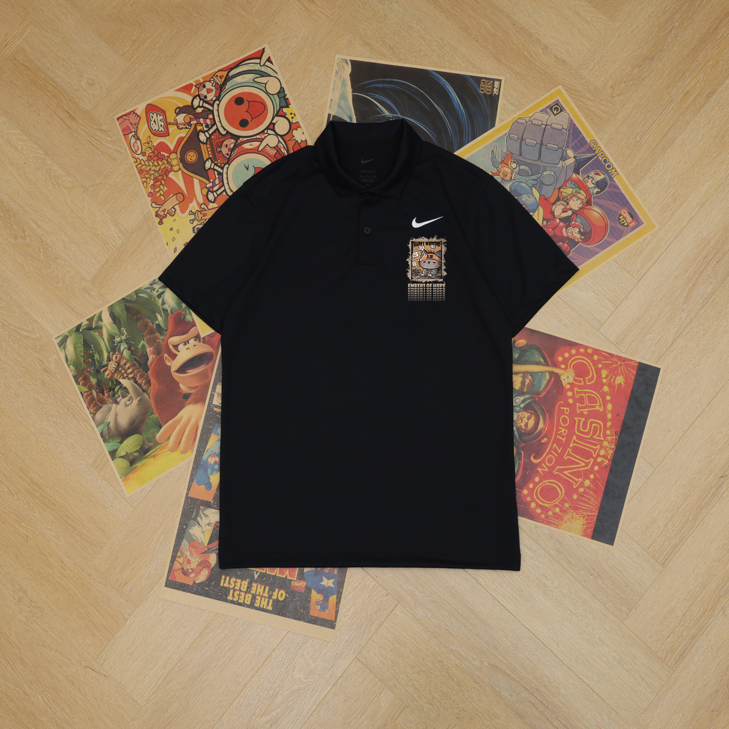 Эти спортивные брюки, разработанные на заказ, созданы на основе оригинальной однотонной теннисной рубашки-поло Nike Dri-Fit с короткими рукавами, застегивающейся на пуговицы, из дышащего материала и быстросохнущего материала, черного цвета, унисекс. Оригинальный дизайн, впервые представленный на Dewu, - лучший выбор для законодателей моды.