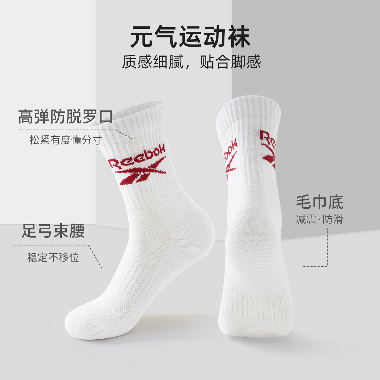 Универсальные баскетбольные носки 3 пары Reebok, белый 1 535₽
