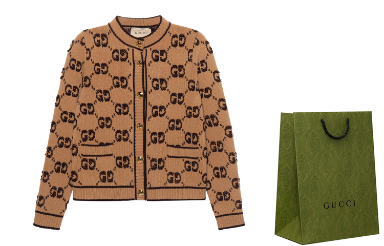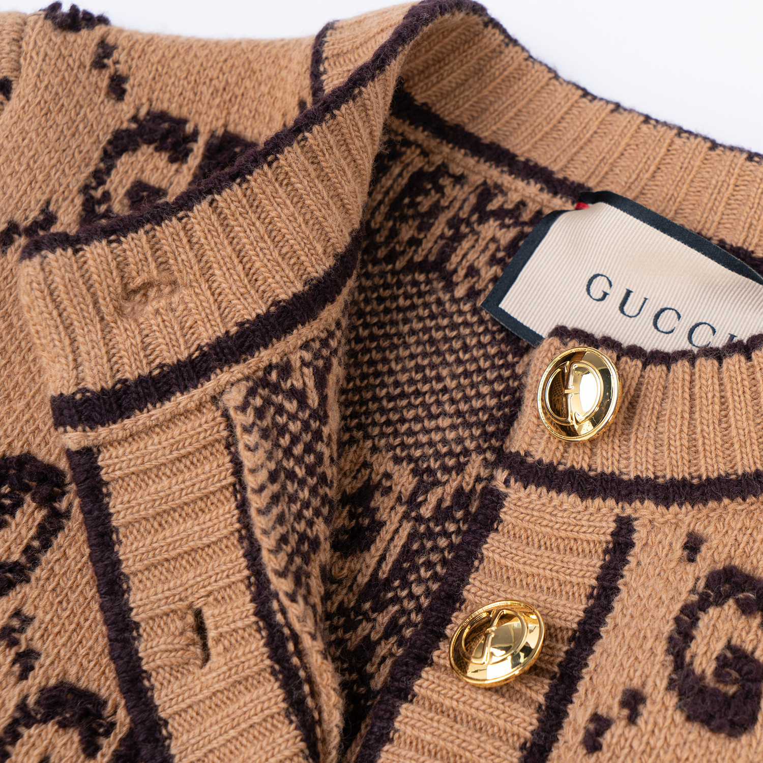 Джаккардовый кардиган GUCCI, коричневый 117 896₽
