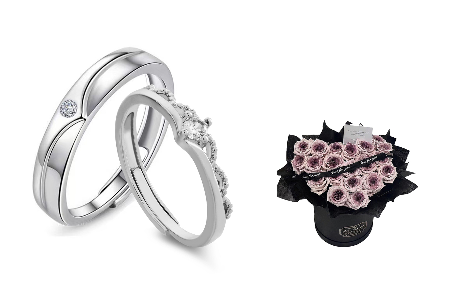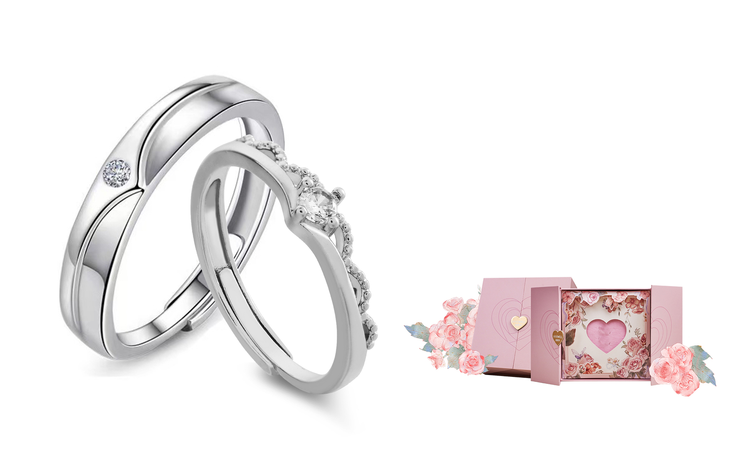 Цвет: Парное кольцо рыцаря и принцессы + подарочная коробка с розой-признанием