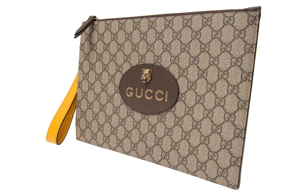 GUCCI Клатч из ткани и кожи унисекс Ebony/Brown/Yellow