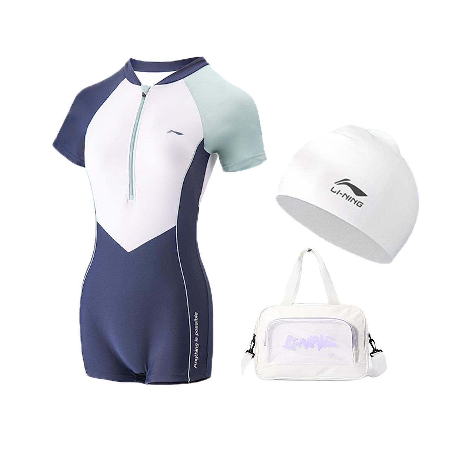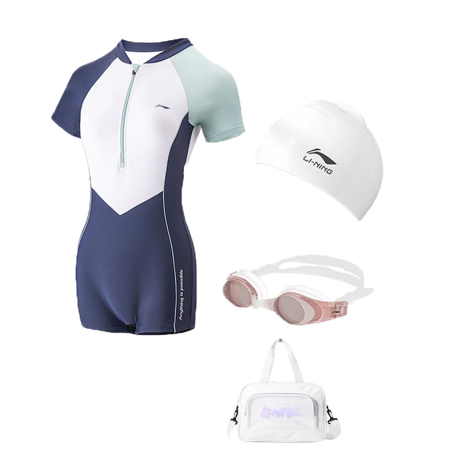 Коробка/набор: белый купальник + очки для плавания + черная сумка для плавания