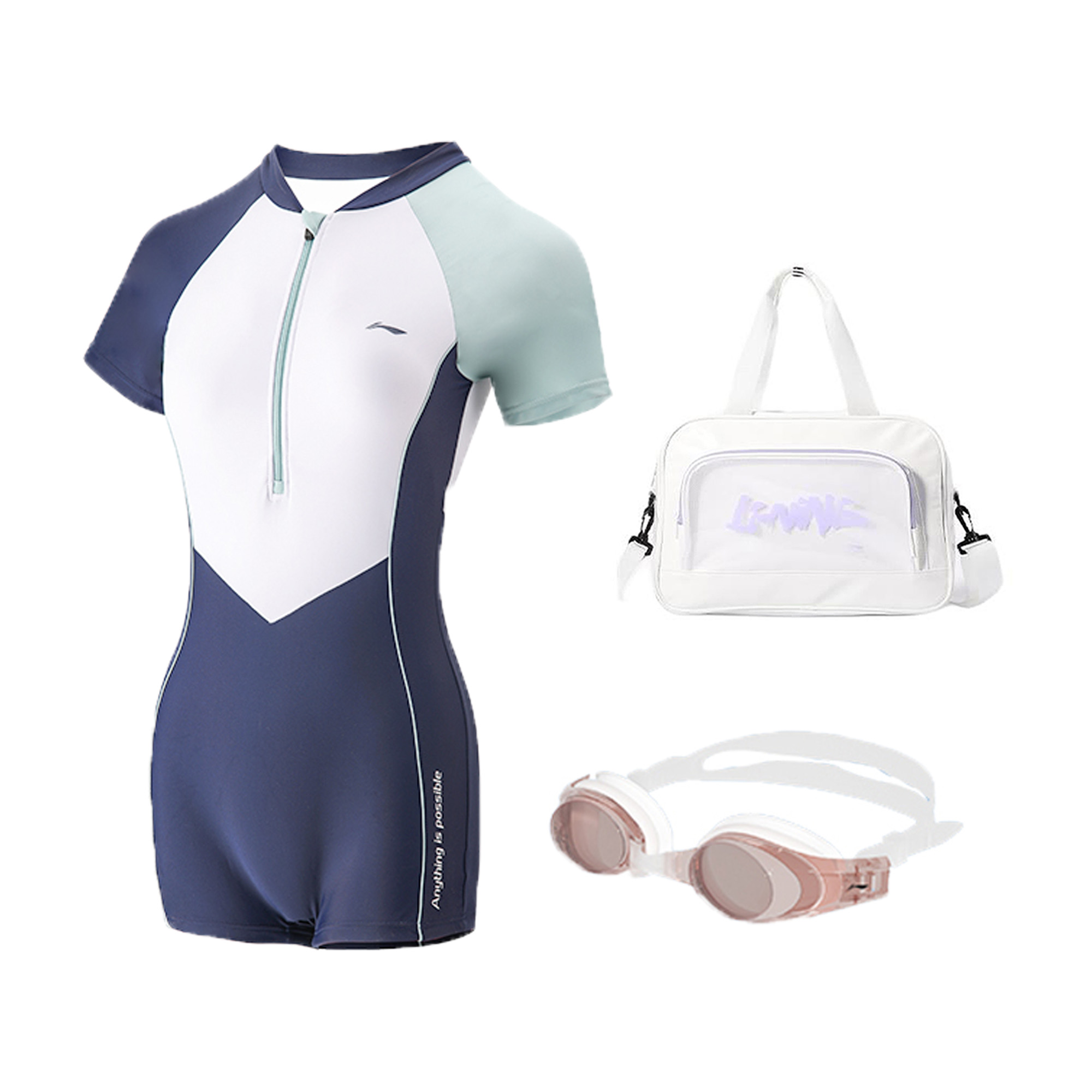 Коробка/набор: белый купальник + шапочка для плавания + очки для плавания + белая сумка для плавания
