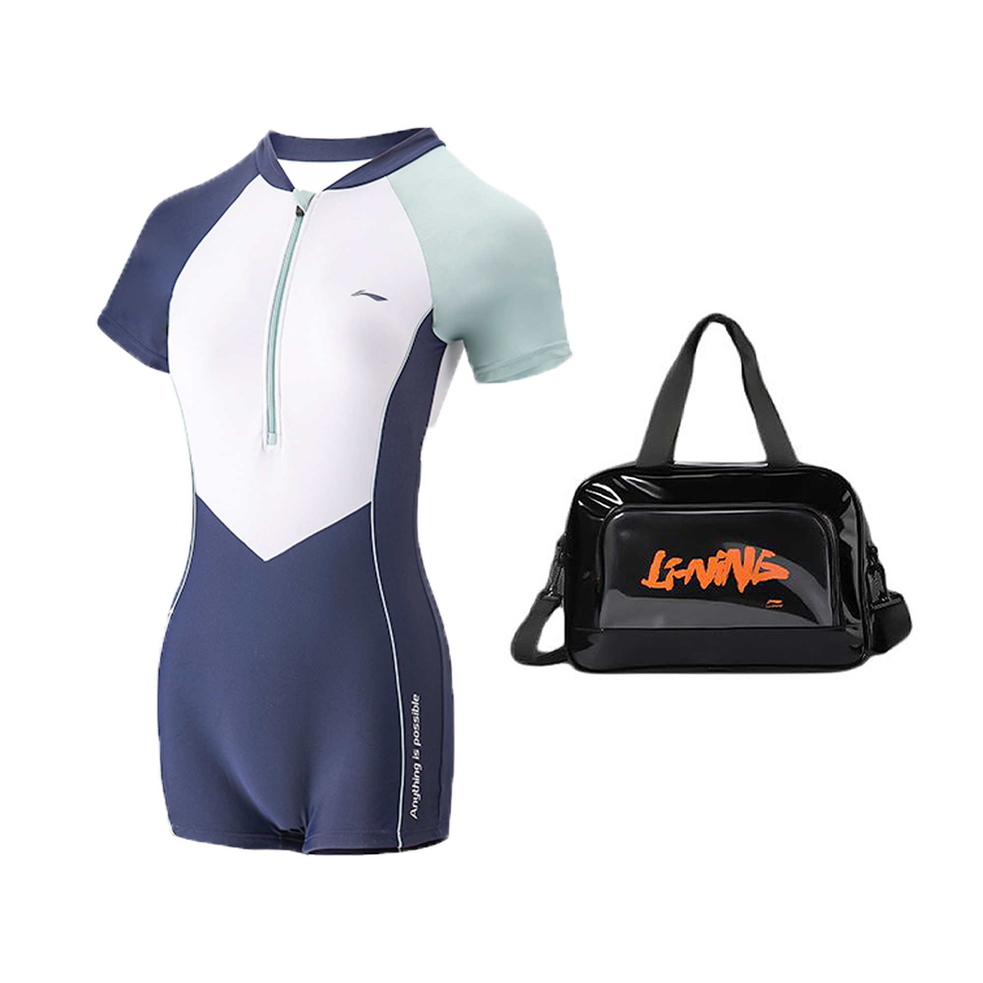 Коробка/набор: белый купальник + шапочка для плавания + очки для плавания + черная сумка для плавания