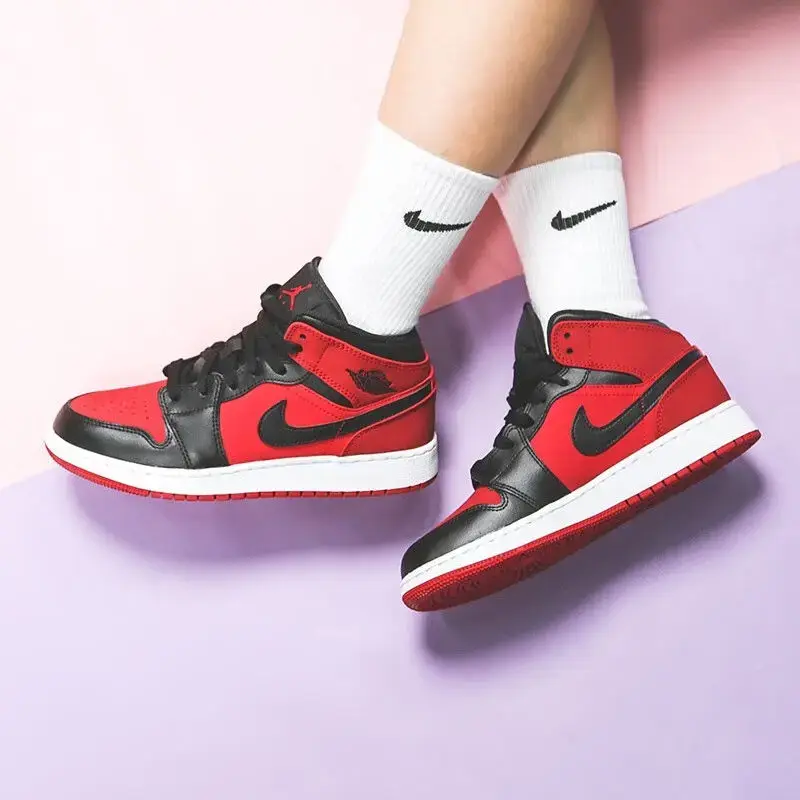 Jordan Кроссовки 1 Mid Gym Red Black GS