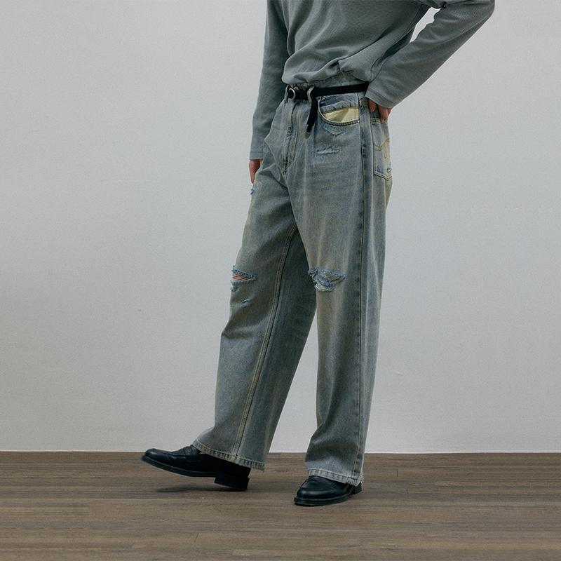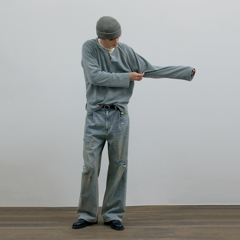 C2H4 Джинсы унисекс постиранные голубые