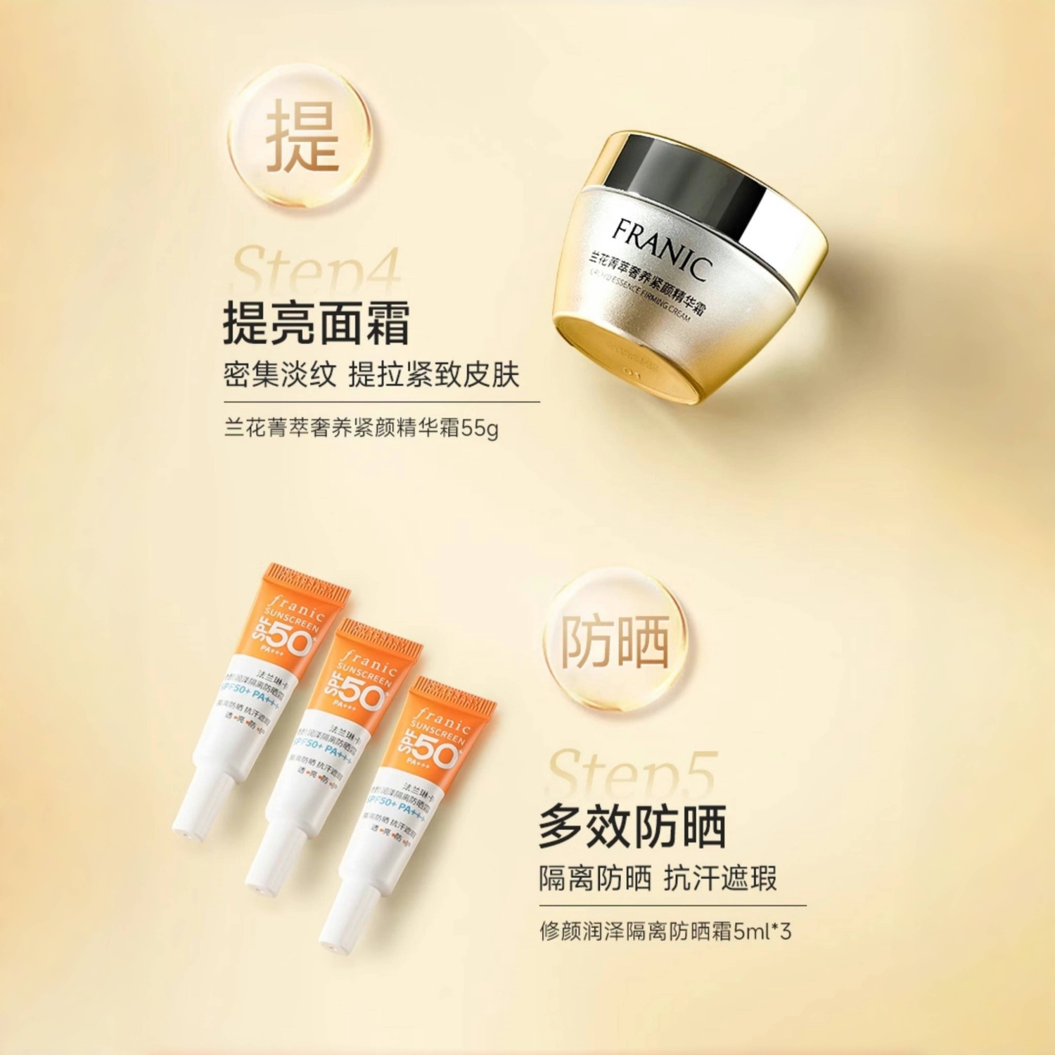 Вес нетто: очищающее средство + вода + эссенция + крем + солнцезащитный крем*3