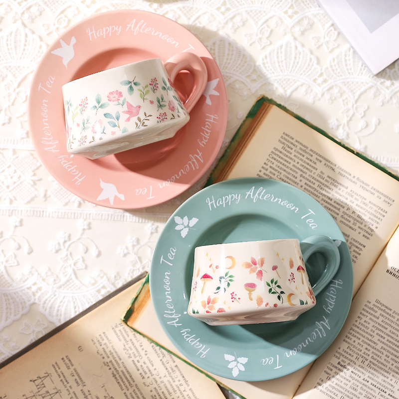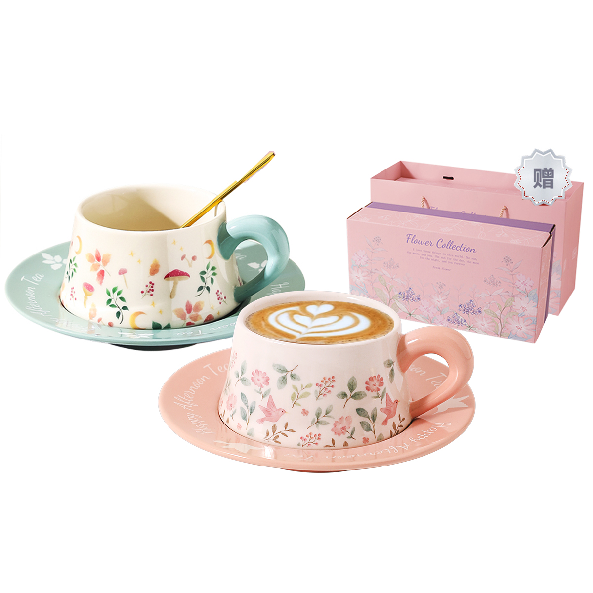 Цвет: [Премиальная коробка с сумкой для покупок] Кофейное блюдце Flower Collection (розовый + фиолетовый)