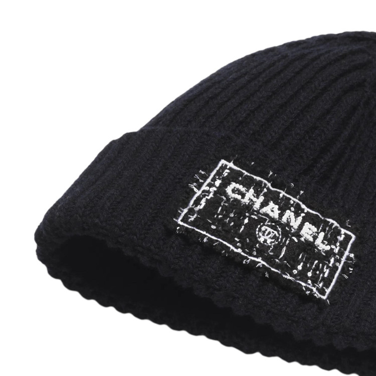 CHANEL Cashmere Beanies Unisex Marine Blue/Black/White