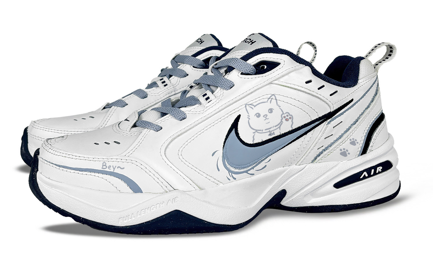 Эти кастомные кроссовки созданы на основе классических низких кроссовок Nike Air Monarch 4 White Navy в ретро-стиле, унисекс, в сине-белой гамме. Оригинальный дизайн выбран случайным образом. Вдохновением послужила фотография котенка, который только что выпал. Все изображения товара взяты с реальных изделий; возможны незначительные различия в цвете из-за особенностей окружающей среды и особенностей экипировки. Кроссовки изготовлены полностью вручную и предназначены для повседневной носки. Во время носки избегайте интенсивных физических нагрузок и царапин от острых предметов, а также не используйте для чистки концентрированные органические растворители.