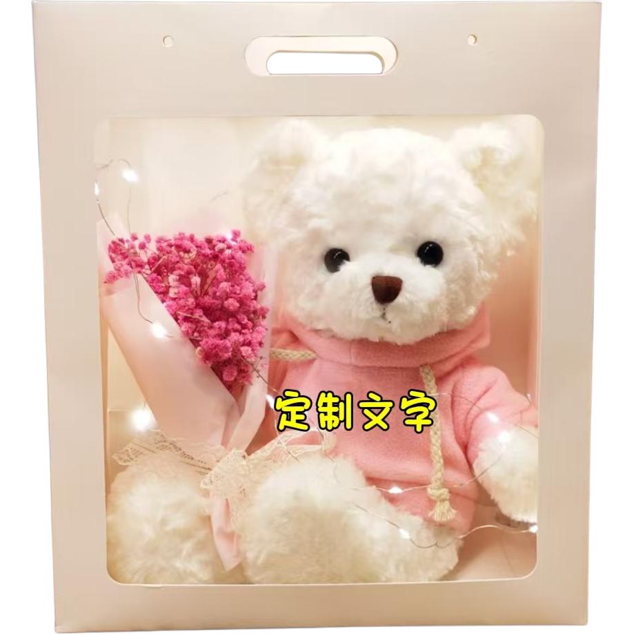 Название продукта: Индивидуальный стиль - розовая толстовка с белым медведем, звездами и прозрачной сумкой для покупок