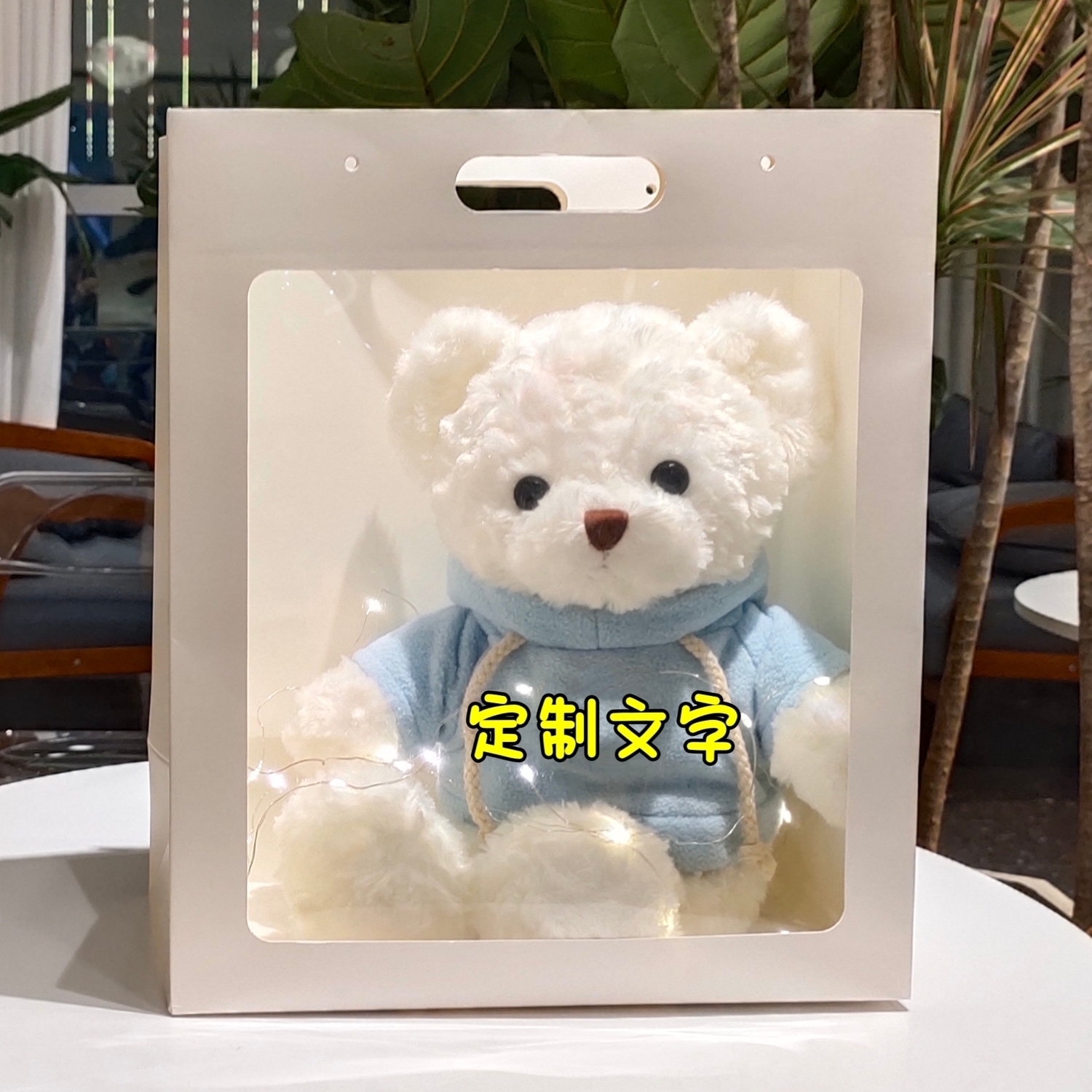 Название продукта: Индивидуальный стиль - Синяя толстовка с белым медведем + Прозрачная сумка для покупок