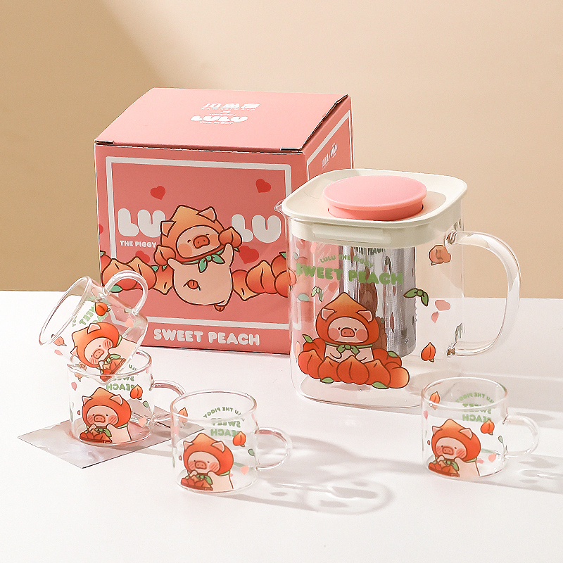 Цвет: [Один чайник с четырьмя чашками + электрическая керамическая плита] Набор чайников для холодной воды LuLu Pig