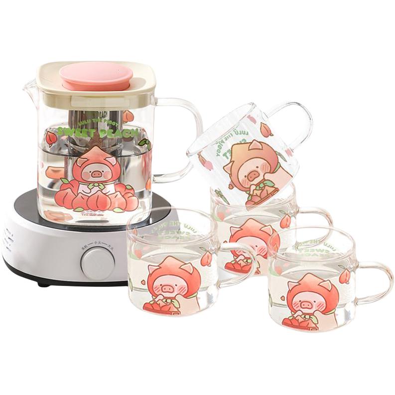 Цвет: [one kettle with four cups+electric ceramic stove]lulu pig cold water kettle set