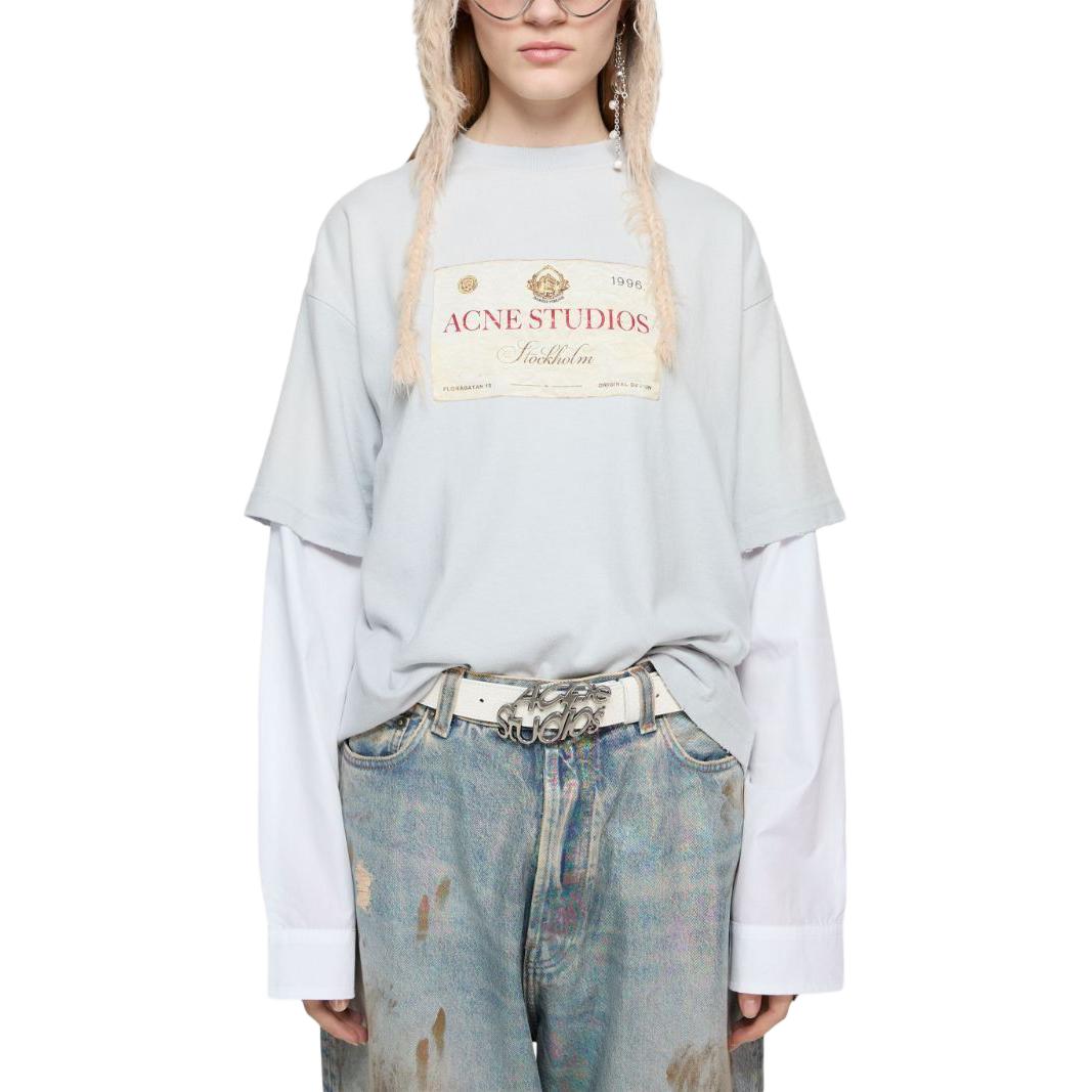Футболка с принтом логотипа Acne Studios, светло-серый