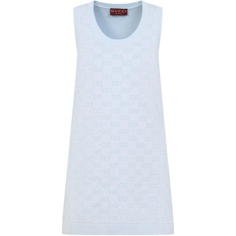 Платье без рукавов с монограммой GUCCI, светло-голубой