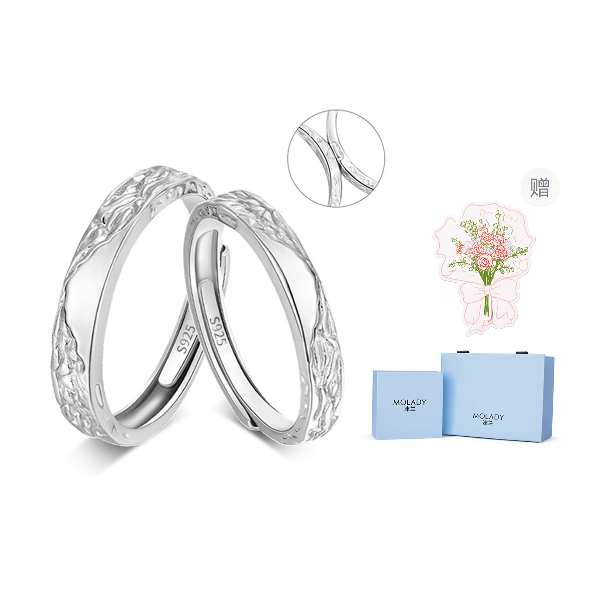 MOLADY Серебряное парное кольцо unisex