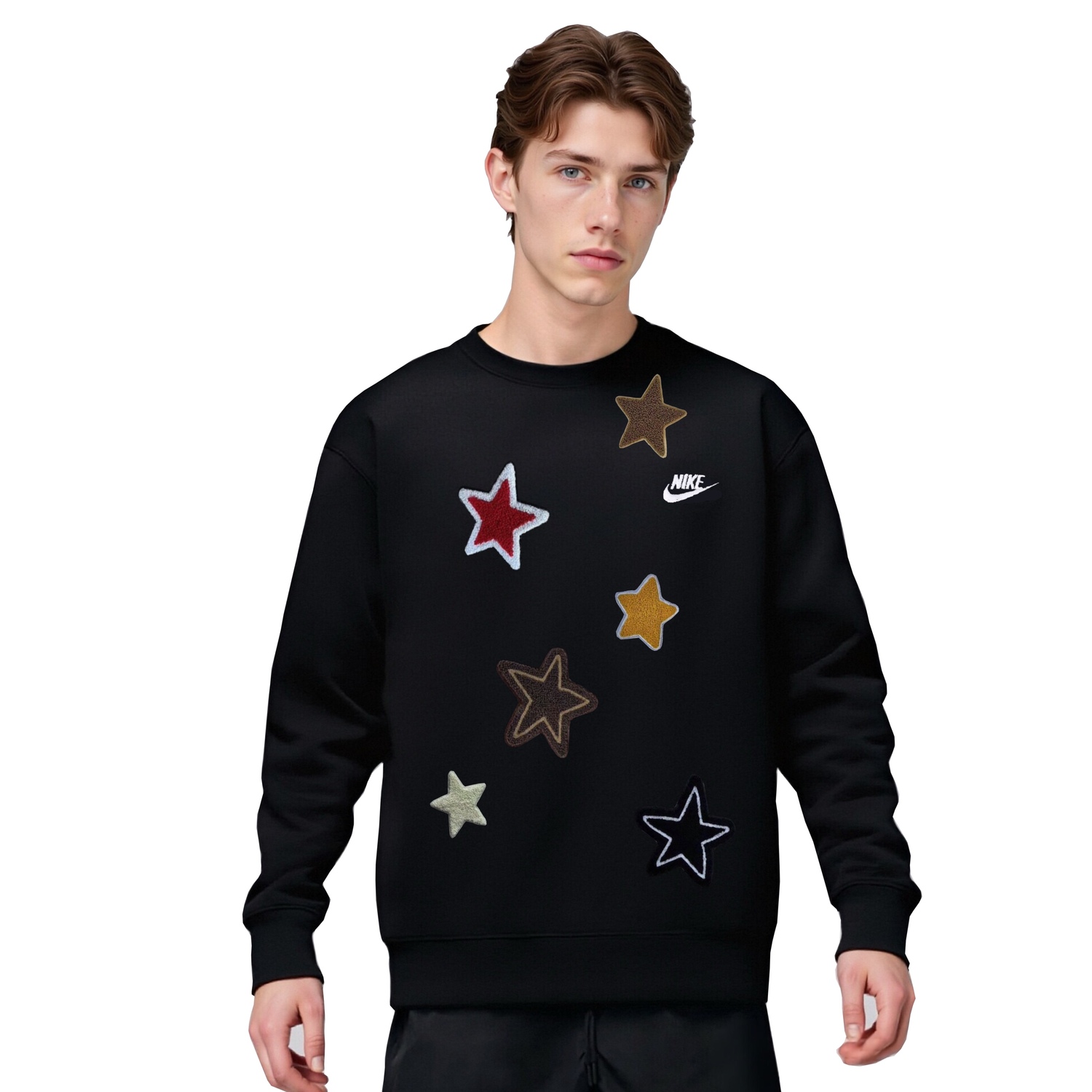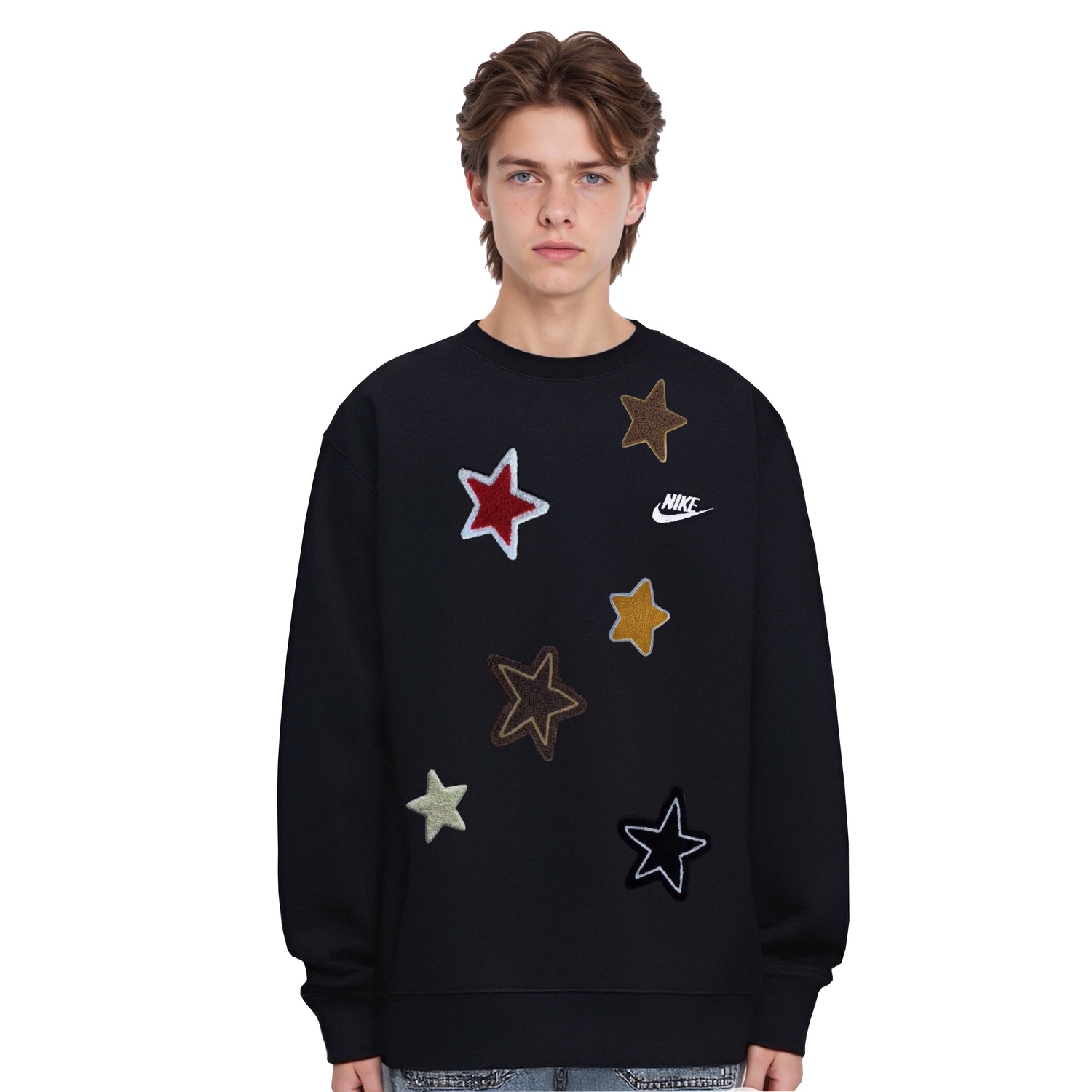Этот сшитый на заказ предмет одежды создан на основе повседневной толстовки Nike с круглым вырезом. Ввиду особенностей изготовления и материалов, этот сшитый на заказ предмет следует беречь от острых предметов, длительного намокания и сушки при высоких температурах.
