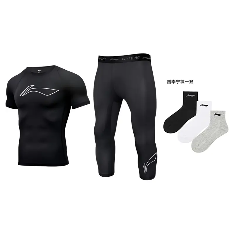 Комплект: черные брюки с короткими рукавами, черные капри и носки Li-Ning, 1 упаковка