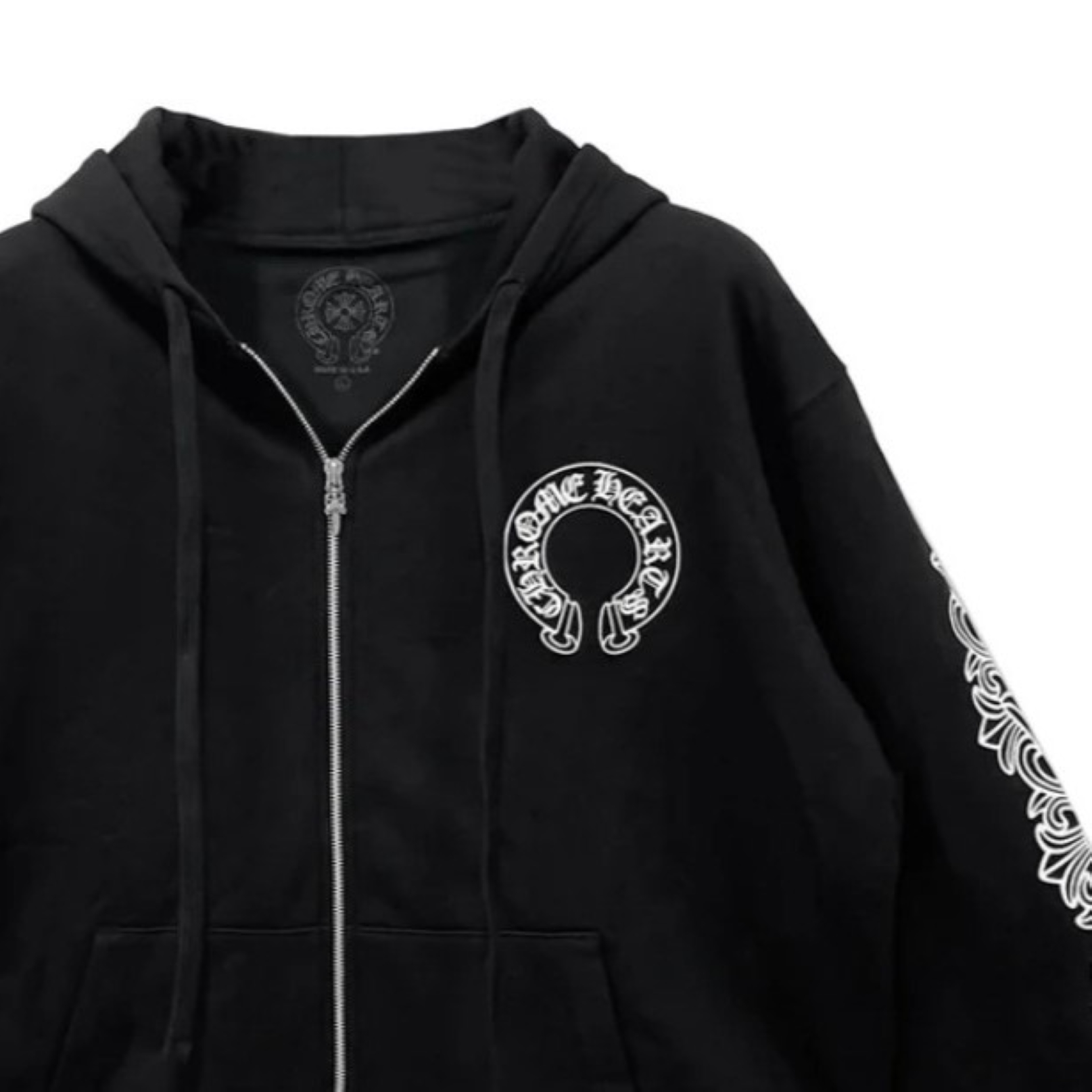 Худи с принтом подковы на молнии Chrome Hearts, черный 219 735₽