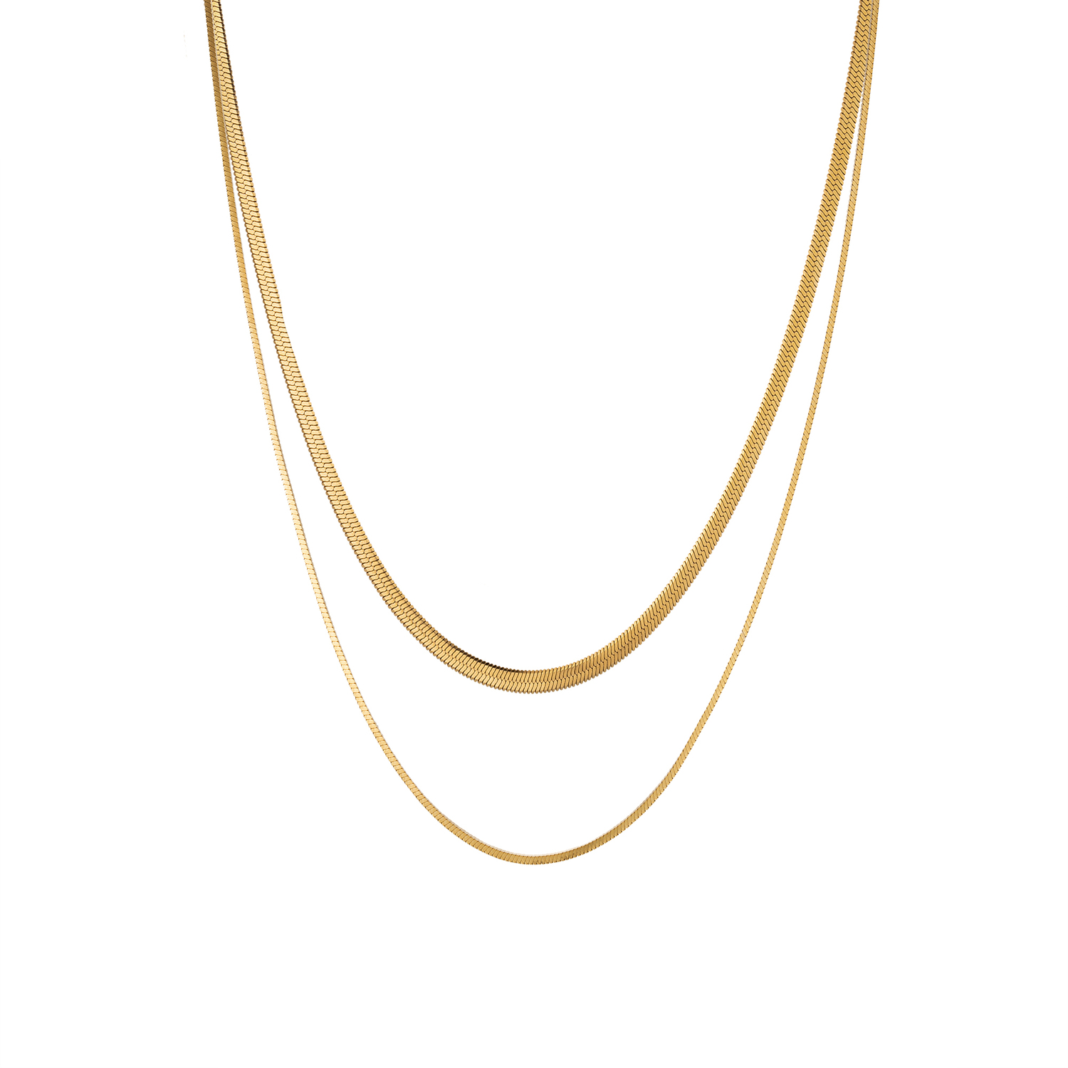 Характеристики: Золотая плоская квадратная цепочка из змеиной кости, сложенная на 18 дюймов + 22 дюйма.