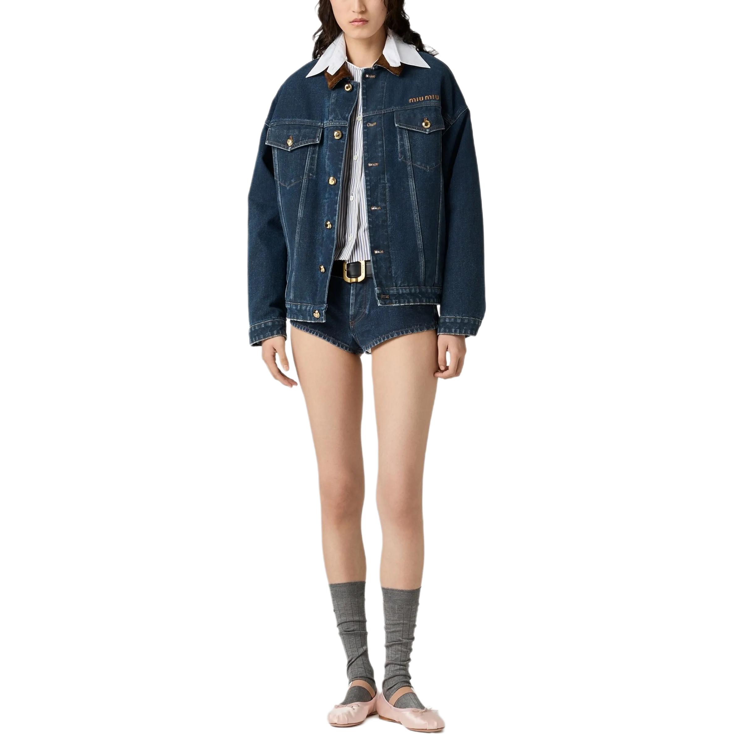Джинсовая куртка с бархатным воротником MIU MIU, синий