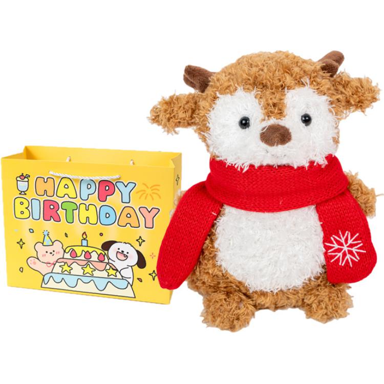 Цвет: олень + шарф в зеленую полоску + сумка для покупок с надписью «С днем ​​рождения»