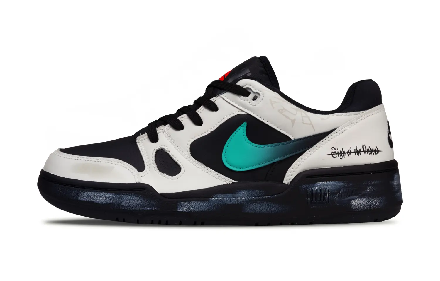 Эти кастомные кроссовки созданы на основе оригинальных противоскользящих и прочных низких кроссовок Nike Full Force. Верхняя часть полностью перекрашена эксклюзивной краской. Кроссовки украшены оригинальными значками дизайна, граффити и модными эффектами аэрозольной краски.