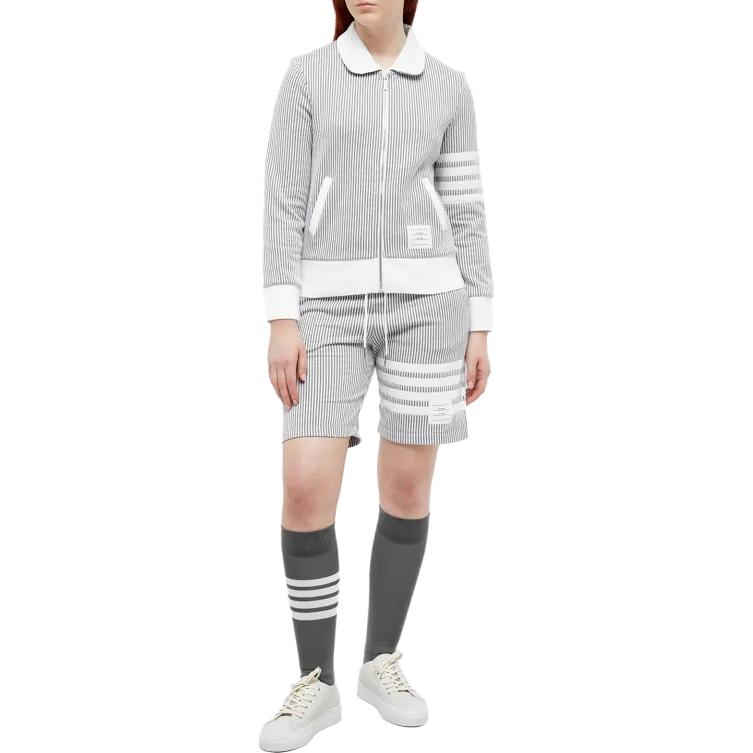 Полосатые шорты из пике с кулиской THOM BROWNE, серый