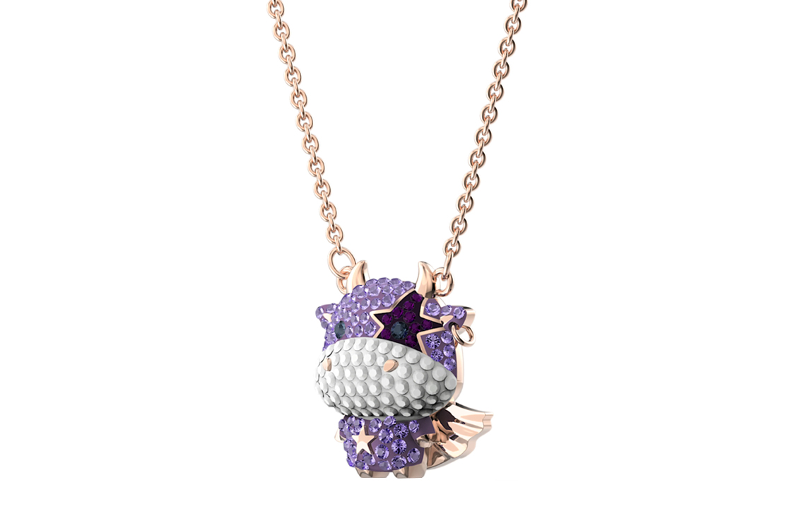 Эта игривая подвеска, вдохновленная образами супергероев, создана в честь года Быка в 2021 году. Центральным элементом является изображение фиолетового быка, выполненное в классической технике кристаллов Swarovski Pointiage. Бык олицетворяет честность и страсть, а фиолетовый цвет символизирует благородство. Это очаровательное яркое украшение станет идеальным подарком для тех, кто родился в год Быка, и доступно эксклюзивно в Большом Китае. Подвеска дополняется изящной металлической цепочкой.