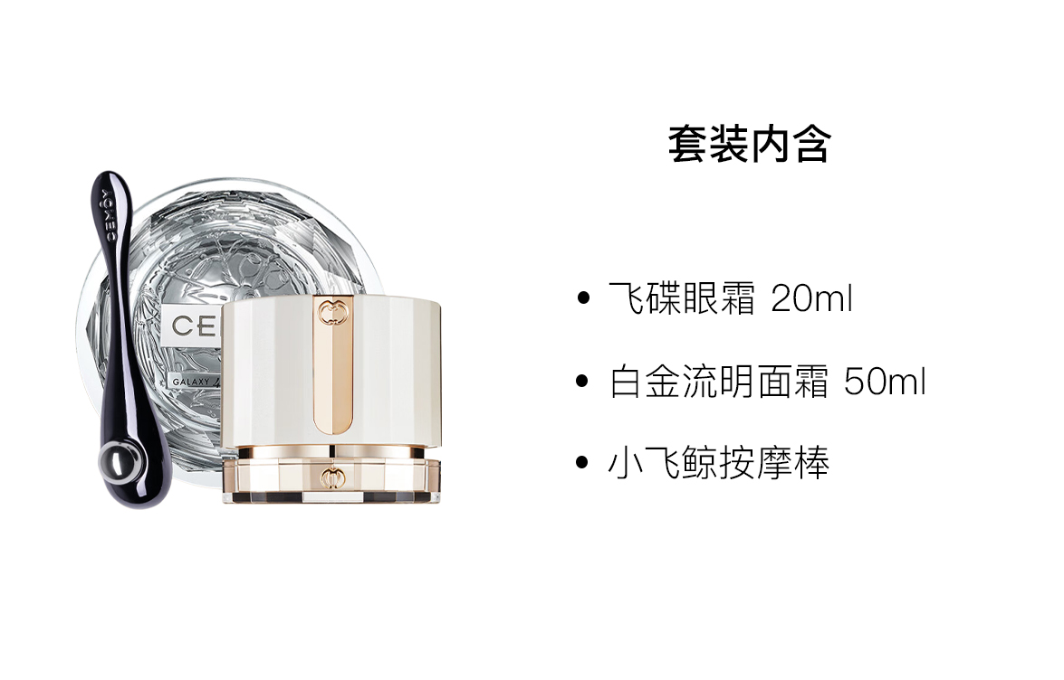 Комплекты одежды: комплект из трех предметов: крем для кожи вокруг глаз «Летающая тарелка» 20 мл + крем для лица Platinum Brightening 50 мл + массажер Little Flying Whale