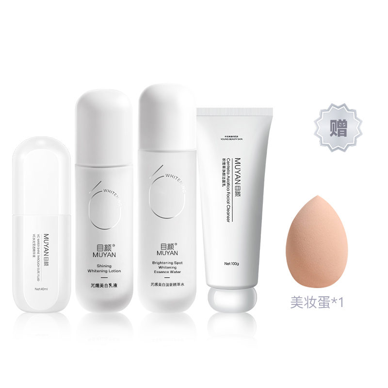 Набор: сыворотка 40 мл + очищающее средство для лица 100 г + отбеливающая вода 120 мл + отбеливающее молочко 100 мл